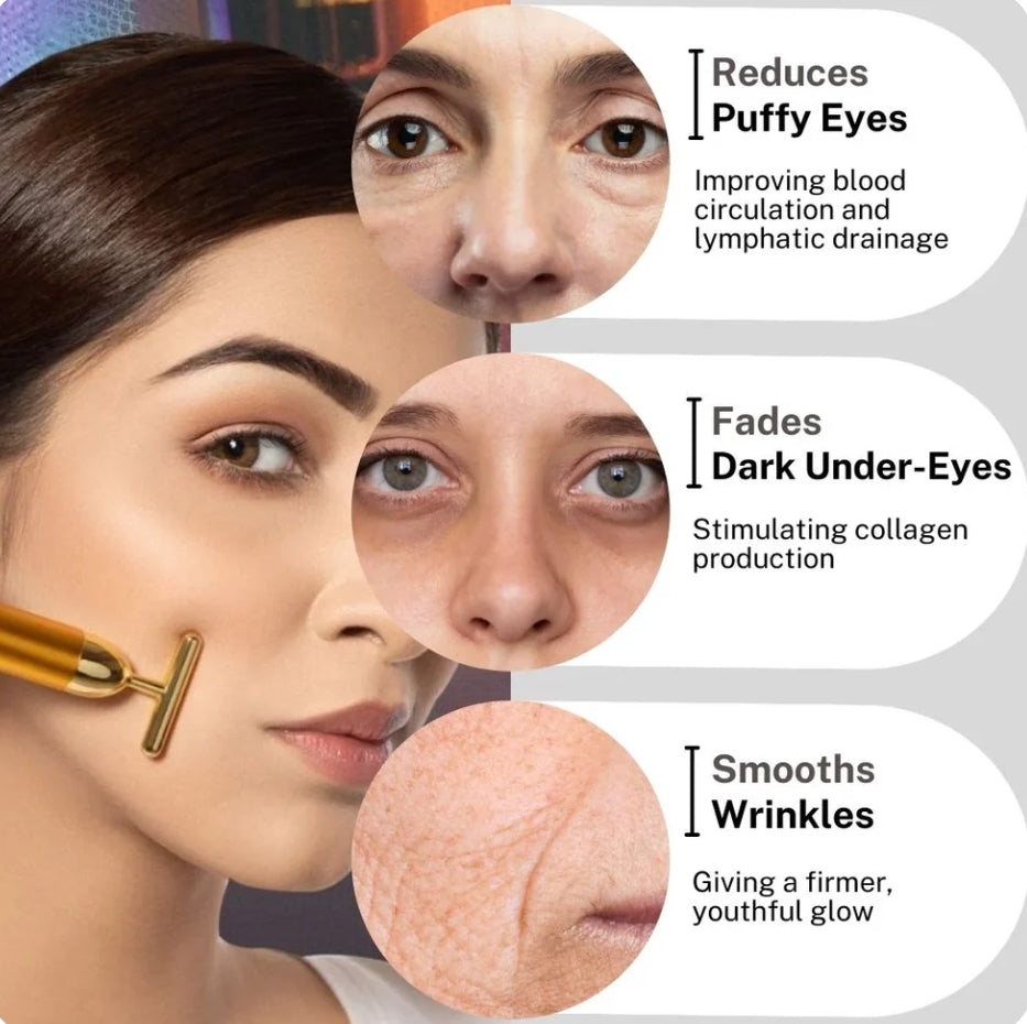 24K Gold Energy Beauty Bar – Electric Facial Massager (6000 Vibrations/min)